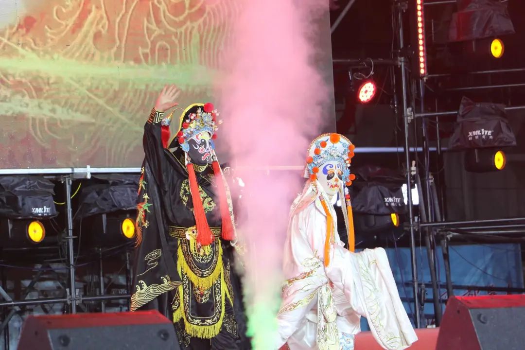 月影西斜,華燈初上。非遺花兒《上去高山望平川》音樂(lè)高亢、悠長(zhǎng)、爽朗,情感真摯,讓觀眾領(lǐng)略到了鮮明的民族風(fēng)格、地方特色及其獨(dú)特魅力;猴王表演《金猴送?!芳尤肓藨騽』瘖y、戲劇技巧等表演手段,將祝福送給每一位觀眾;《板胡五重奏》豪放跌宕,清麗委婉,舒展愜意,優(yōu)美動(dòng)人的旋律引得觀眾一次次陶醉、回味無(wú)窮……