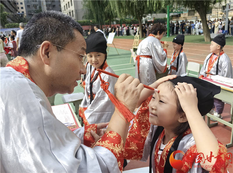 據(jù)介紹,七里河小學開筆禮服裝均由學校提供,每年使用后清洗保存,學生不用租借禮服。學校將開筆禮的儀式一年年傳承下來,希望同學們可以接受到傳統(tǒng)文化,從寫人字入手,感受人字帶來的人生哲理,開啟新的學習生涯。同時,開筆禮中的端正衣冠、朱砂啟智、擊鼓鳴志等都是傳承千年的入學禮儀,是孩子們了解中華傳統(tǒng)文化的一個窗口。