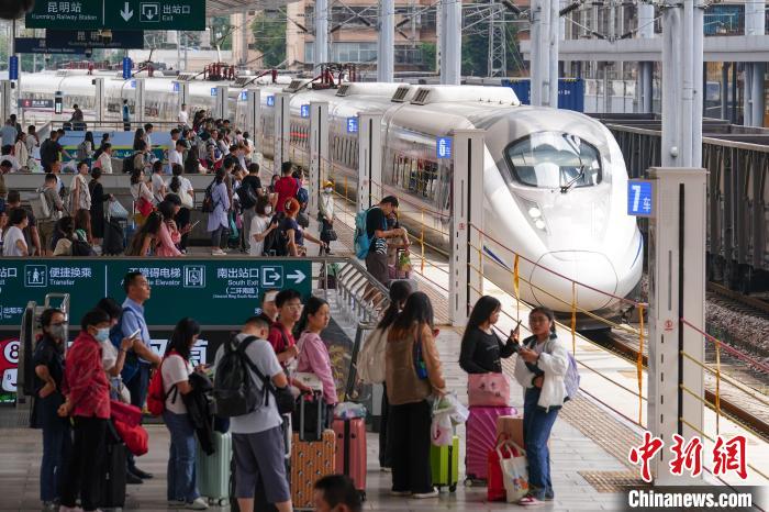 8月31日,云南昆明,列車抵達(dá)昆明站。當(dāng)日,為期62天的中國鐵路暑運(yùn)結(jié)束。中新社記者 劉冉陽 攝