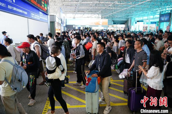 8月31日,云南昆明,旅客在昆明站候車前往西雙版納方向。當(dāng)日,為期62天的中國鐵路暑運(yùn)結(jié)束。中新社記者 劉冉陽 攝