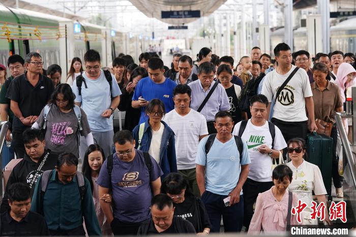 8月31日,云南昆明,列車抵達(dá)昆明站,旅客走出站臺(tái)。當(dāng)日,為期62天的中國鐵路暑運(yùn)結(jié)束。中新社記者 劉冉陽 攝
