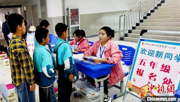 1日,積石山縣大河家鎮(zhèn)五一小學開學。該校是新建學校,圖為開學報名現(xiàn)場。滕漢霞 攝