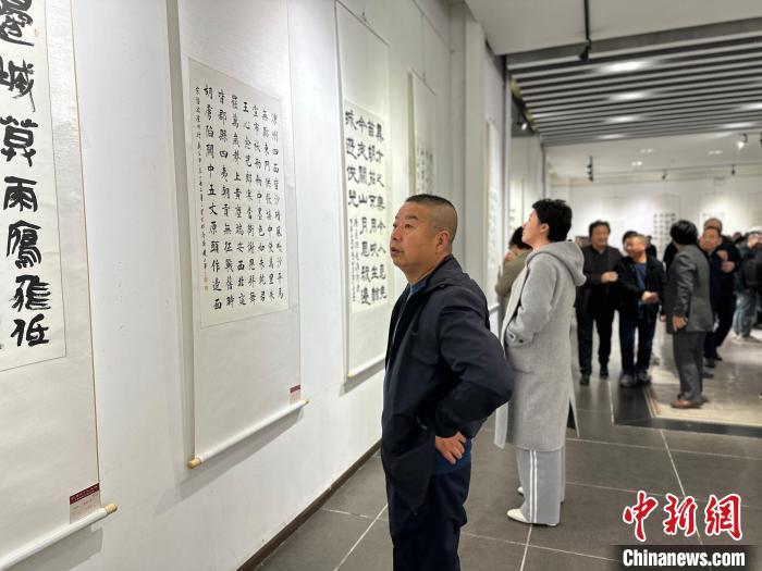 圖為展覽吸引書法愛好者觀賞。楊娜 攝