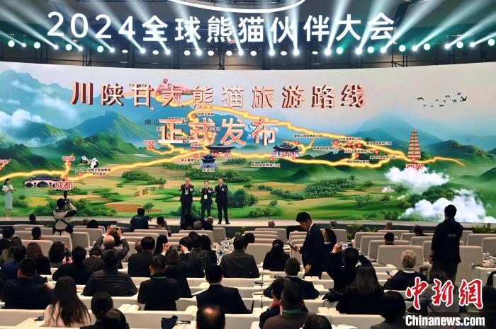 11月26日,四川成都,大會(huì)上的川陜甘大熊貓旅游線路發(fā)布現(xiàn)場(chǎng)。中新社記者 安源 攝