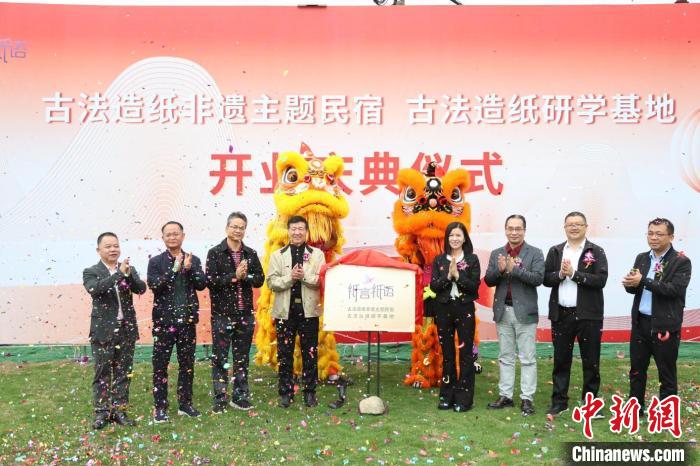 古法造紙研學(xué)基地、古法造紙非遺主題民宿開業(yè)儀式。麥瑞聰 供圖