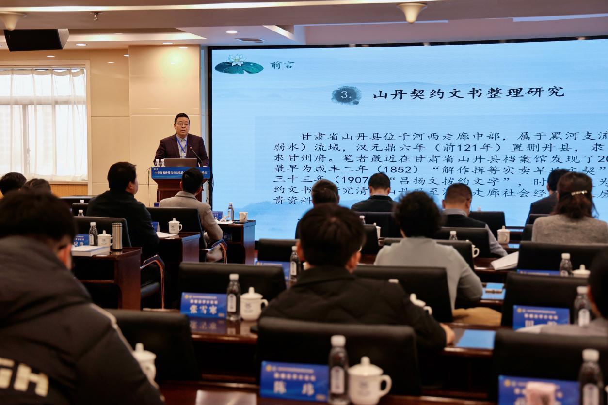 此外,河西學(xué)院歷史文化與旅游學(xué)院院長(zhǎng)謝繼忠教授也在論壇上作了主旨報(bào)告,他通過(guò)新發(fā)現(xiàn)的20份山丹契約文書(shū),深入剖析了清末甘肅山丹鄉(xiāng)村社會(huì)治理的特點(diǎn)及其啟示,為認(rèn)識(shí)傳統(tǒng)社會(huì)整體面貌及其特點(diǎn)提供了新史料、新視角。
