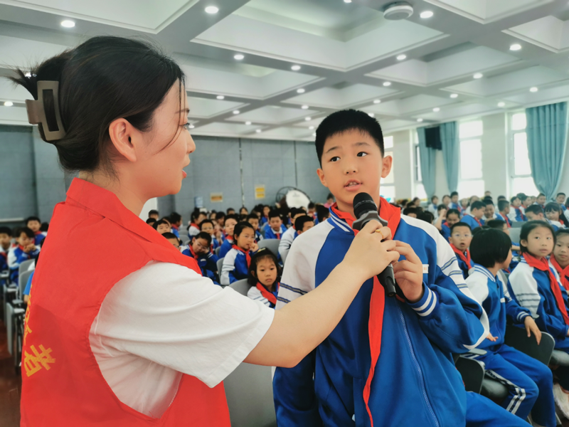 在“文明上網(wǎng)·快樂童行”主題活動(dòng)中,小學(xué)生回答網(wǎng)絡(luò)文明志愿者的提問。蘭州文明網(wǎng)供圖