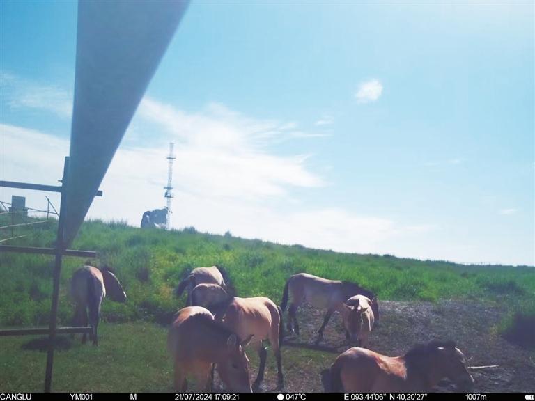 近日,甘肅敦煌西湖國(guó)家級(jí)自然保護(hù)區(qū)管護(hù)中心工作人員整理紅外相機(jī)拍攝畫(huà)面時(shí),發(fā)現(xiàn)拍攝到普氏野馬“哺乳”的清晰影像。畫(huà)面拍攝于今年7月下旬,有8匹普氏野馬繁殖群正在馬圈灣濕地的飲水泉附近活動(dòng),其中有一匹小馬駒滿足地吸吮著母馬的乳汁。據(jù)監(jiān)測(cè),該小馬駒出生于6月上旬,畫(huà)面中約已有一個(gè)半月大小,身體健康,毛色光亮。這個(gè)繁殖群領(lǐng)地范圍主要從馬圈灣西觀景臺(tái)至馬圈灣東高地,該區(qū)域可采食物種類(lèi)豐富、水源充沛,是適合普氏野馬生活的美麗家園。普氏野馬是國(guó)家一級(jí)重點(diǎn)保護(hù)動(dòng)物,常棲息于山地、草原和荒漠,性機(jī)警、善奔跑。近年來(lái),隨著敦煌西湖保護(hù)區(qū)生態(tài)環(huán)境保護(hù)力度加大,生態(tài)環(huán)境質(zhì)量持續(xù)改善,群眾保護(hù)野生動(dòng)植物的意識(shí)不斷增強(qiáng),使野生動(dòng)物活動(dòng)范圍不斷擴(kuò)大,種群數(shù)量不斷增加。截至目前,敦煌西湖保護(hù)區(qū)內(nèi)普氏野馬種群數(shù)量已達(dá)166匹。