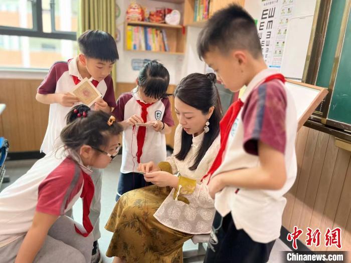 6月,國家級非物質文化遺產代表性項目民間繡活(夏布繡)市級代表性傳承人吳婉菁正在給幾位學生展示夏布繡。(受訪者供圖)