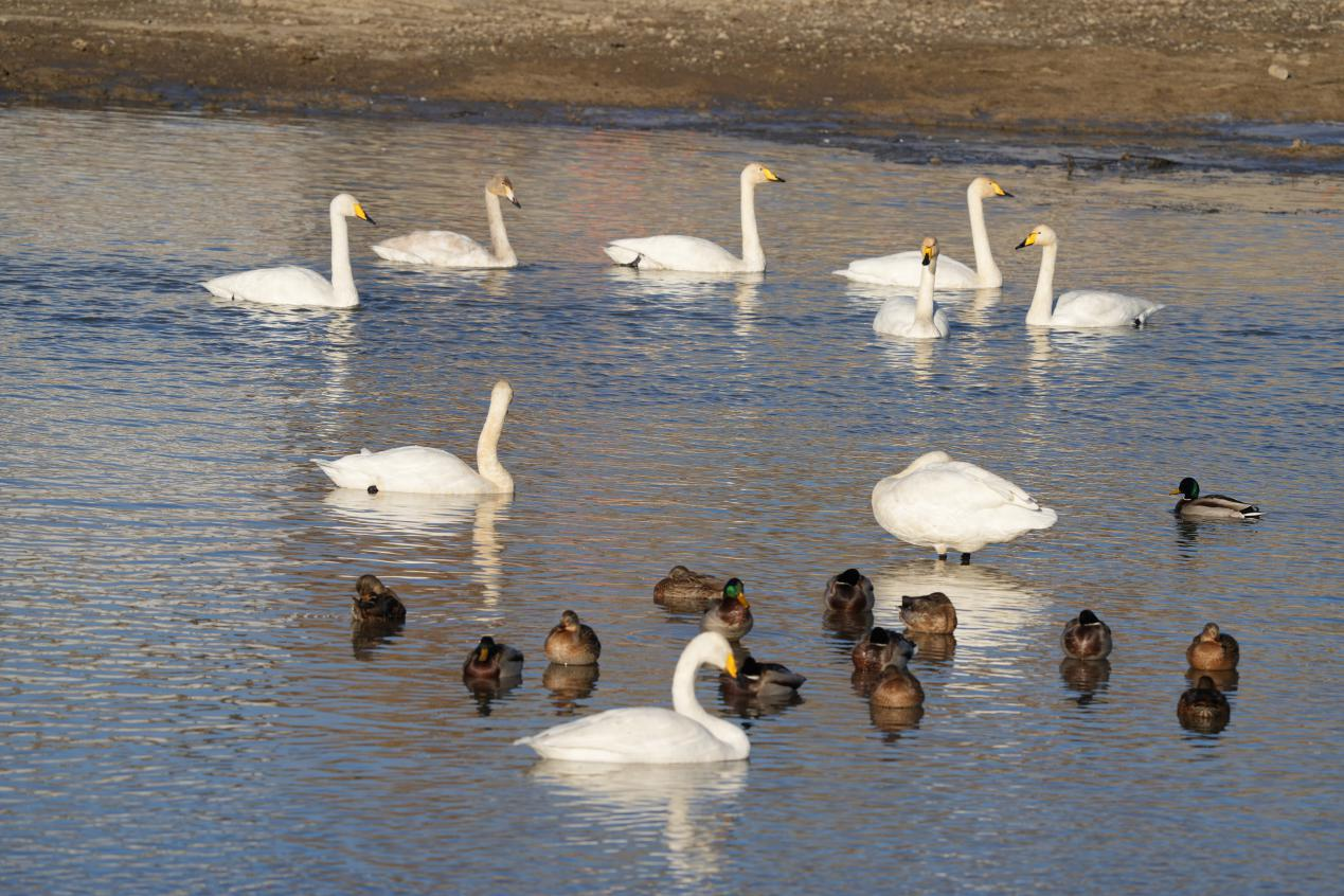 近日,新疆額敏縣迎來了一個令人欣喜的消息:越冬的天鵝數(shù)量已增至146只。