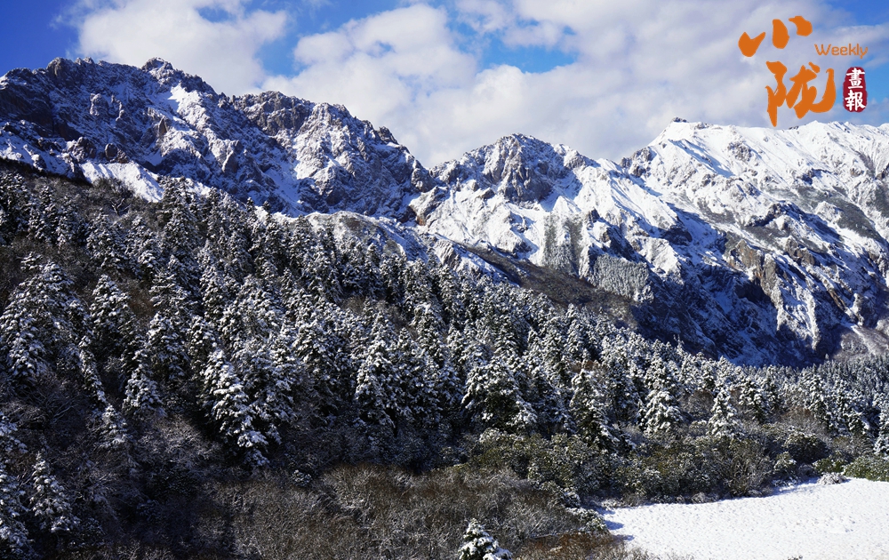 群山銀裝素裹,在皚皚白雪的映襯下,峰谷相連,形成一道獨(dú)特的風(fēng)景。