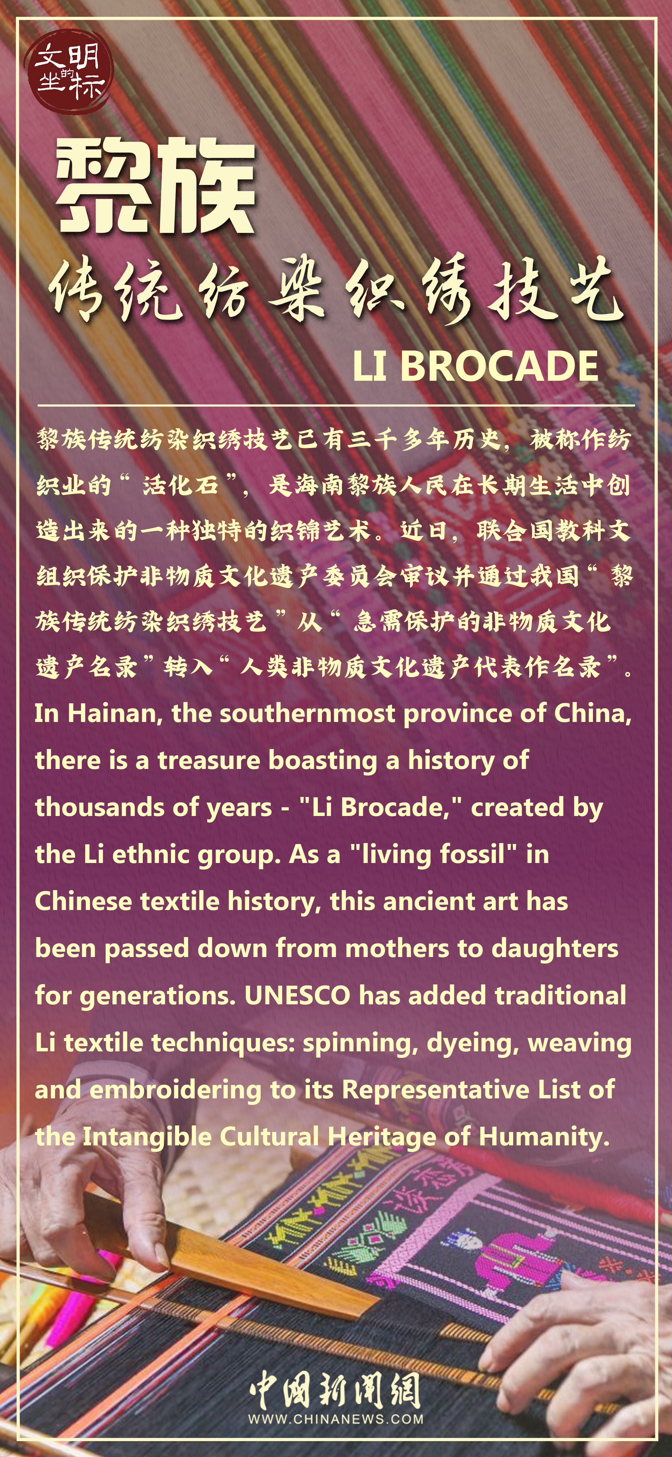 日前,黎族傳統(tǒng)紡染織繡技藝從聯(lián)合國(guó)教科文組織“急需保護(hù)的非物質(zhì)文化遺產(chǎn)名錄”轉(zhuǎn)入“人類(lèi)非物質(zhì)文化遺產(chǎn)代表作名錄”,引發(fā)關(guān)注。黎族傳統(tǒng)紡染織繡技藝已有三千多年歷史,被稱(chēng)作紡織業(yè)的“活化石”。對(duì)于沒(méi)有創(chuàng)造文字的黎族,黎錦像是一本“史書(shū)”,寫(xiě)就了這個(gè)民族的文化和智慧。早在新石器時(shí)代,海南島上的黎族先民已會(huì)使用工具制作繩索或絲線(xiàn)。西漢時(shí)期,已織造出精美的“廣幅布”。至宋代,黎族的紡織達(dá)到很高水平。元代,黎族紡織工藝已傳至全國(guó)。黎族傳統(tǒng)紡染織繡技藝有麻織、棉織、織錦、印染(包括扎染)、刺繡、龍被等品種,以色彩鮮艷、圖案多樣、工藝精湛而聞名。如今,古老黎錦正穿越歷史長(zhǎng)河,以時(shí)尚化、潮流化、年輕化的設(shè)計(jì)形態(tài)融入現(xiàn)代日常生活。