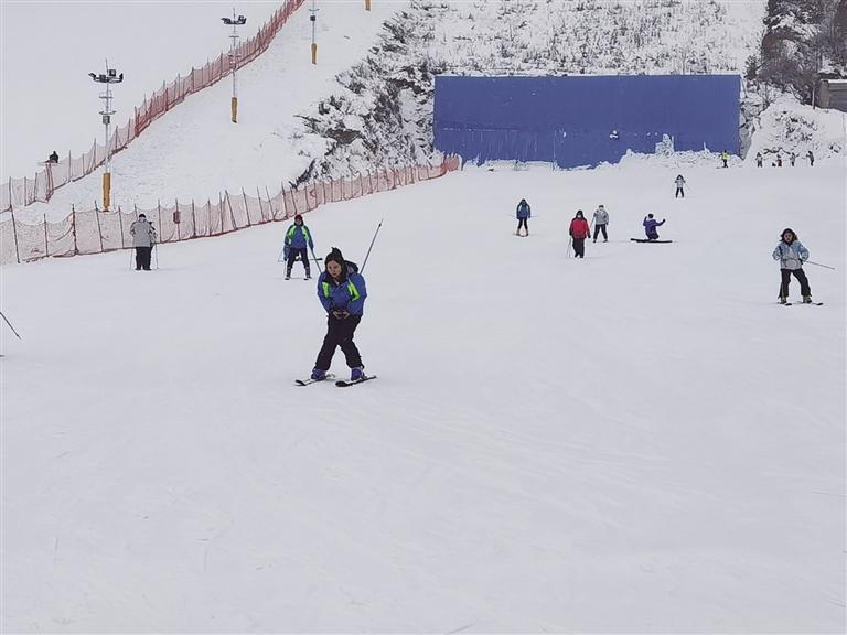 接著來(lái)到興隆山滑雪場(chǎng),這里是冰雪運(yùn)動(dòng)愛好者的歡樂天地。滑雪場(chǎng)經(jīng)理賈青云介紹,該滑雪場(chǎng)占地超400畝,擁有5條初、中級(jí)滑雪道,是中初級(jí)滑雪愛好者的樂園,今年全新打造的兩萬(wàn)平方米豪華“戲雪樂園”更是引人注目。“開業(yè)不到一個(gè)月,已接待游客一萬(wàn)多人,周末日均客流量超一千,平日也有四、五百人,滑雪場(chǎng)可同時(shí)容納2000人滑雪。”賈青云表示,滑雪場(chǎng)近期推出了優(yōu)惠活動(dòng),原價(jià)128元的門票現(xiàn)只需88元,包含滑雪服和存衣柜的使用。值得一提的是,經(jīng)過改造升級(jí)后的滑雪場(chǎng)加入了波西米亞風(fēng)格,設(shè)有拍照打卡地和咖啡廳,成為年輕消費(fèi)者熱衷的網(wǎng)紅打卡點(diǎn),游客在此不僅能滑雪,還能享受火鍋、烤肉等美食,體驗(yàn)別樣的冬日休閑時(shí)光。