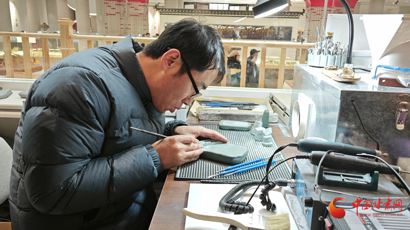在動(dòng)態(tài)展演區(qū)域,多位非遺傳承人現(xiàn)場(chǎng)創(chuàng)作,吸引了大量游客駐足觀(guān)看。游客和學(xué)生們可以近距離接觸每一項(xiàng)非遺工藝的制作過(guò)程,親眼目睹原材料如何在傳承人的手中變成一件件栩栩如生的藝術(shù)品。