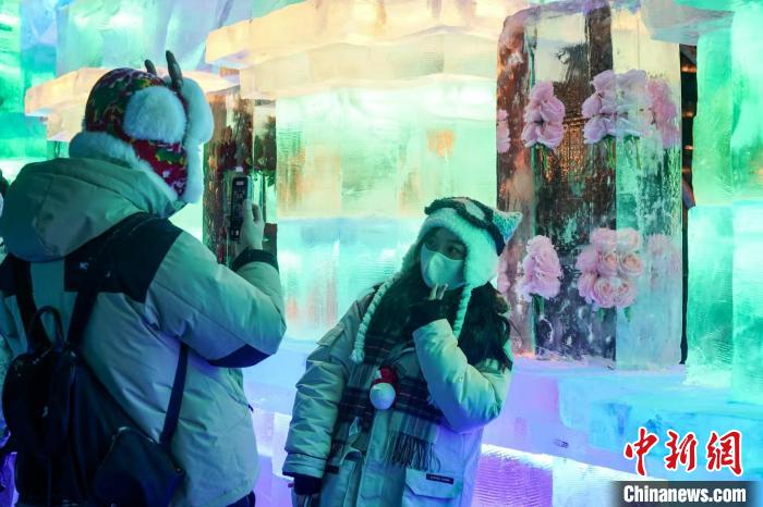 游客在哈爾濱冰燈藝術游園會打卡拍照 趙宇航 攝