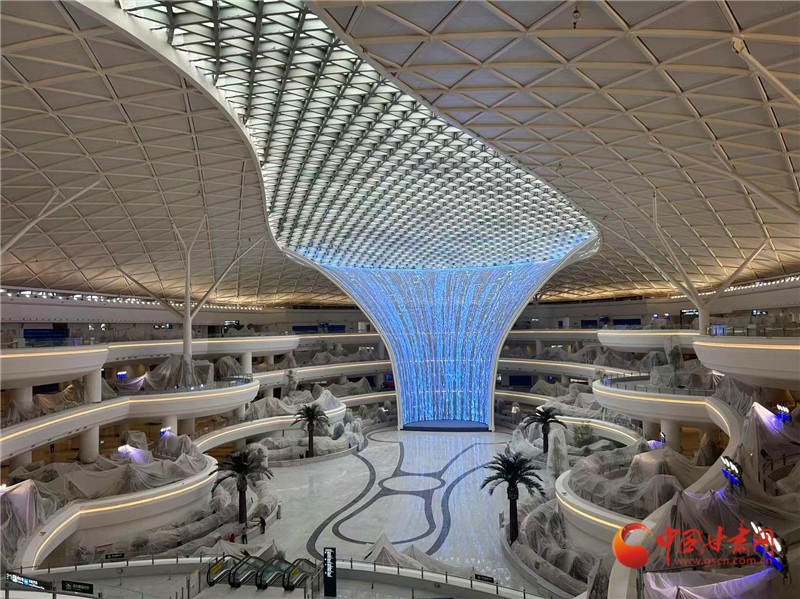 目前,口岸查驗設施基本完成;綜合交通中心工程土建安裝、裝飾裝修工程全部完成,容納3520個停車位;信息大樓工程核心機房設備、弱電系統(tǒng)、裝修全部完成;機場業(yè)務用房、安檢護衛(wèi)用房、值班宿舍、國際國內貨運庫等附屬工程全面建成;綜合管廊、場區(qū)道路全線貫通;如意廣場、主進場道路等場區(qū)綠化苗木基本栽植完成。