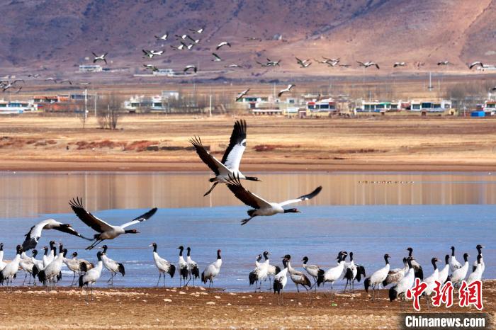 黑頸鶴是中國(guó)國(guó)家一級(jí)保護(hù)動(dòng)物,是唯一生活、繁殖在高原的鶴類,被藏族民眾譽(yù)為“神鳥”。拉薩市林周縣、墨竹工卡縣等拉薩河流域是黑頸鶴的主要越冬地之一。近年來,西藏自治區(qū)多措并舉實(shí)施生態(tài)建設(shè)工程,黑頸鶴數(shù)量逐年遞增,目前西藏黑頸鶴數(shù)量超過萬只。
