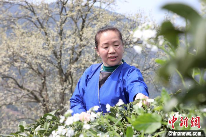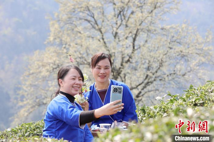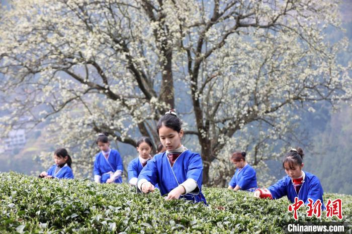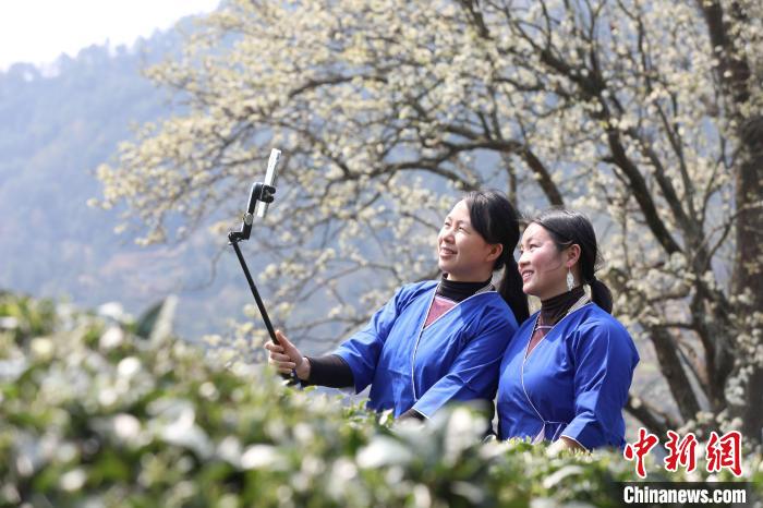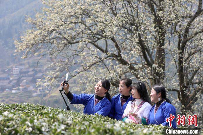 3月16日,廣西三江侗族自治縣八江鎮(zhèn)歸令村六更屯種植的千樹梨花迎春綻放,與青翠茶園、特色民居相映成趣,構成一幅如詩如畫的春日畫卷。當地村民及游客紛紛前來采茶賞花、“打卡”拍照,享受春日美好時光。圖為村民在采春茶。龔普康 攝