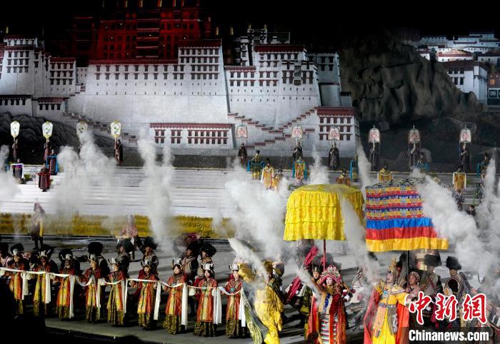 圖為《文成公主》大型實景劇第十三季演出現(xiàn)場。中新社記者 李林 攝