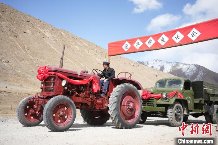 紅色“55輪式拖拉機”名叫“鐵牛”,前杠上寫著“出生年月”:1979年10月。微電影《五十七公里》中,張?zhí)煳妮d著戲中主持修路的陶書記,在牧民們的歡呼雀躍中,將它開進通車典禮現(xiàn)場。