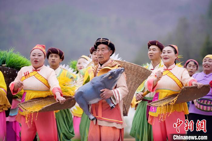 依托黎壩鎮(zhèn)層疊梯田的天然弧度與蒼翠山谷的立體聲場(chǎng),該劇將鎮(zhèn)巴民歌、陜南民俗等非遺元素融入山水實(shí)景。春之序曲《山歌迎賓》中,油菜花海間百人山歌陣,以原生態(tài)多聲部民歌編織迎賓盛景;夏之華章《綠的交響》里,非遺薅草鑼鼓與現(xiàn)代音樂(lè)碰撞出農(nóng)耕文明的力與美;秋之禮贊《金的節(jié)奏》在陽(yáng)光下呈現(xiàn)打連枷聲浪與稻浪共舞的豐收奇景;冬之情書(shū)《紅的濃情》則通過(guò)圍爐陜南說(shuō)唱,在吊爐光影間訴說(shuō)巴山兒女的熾熱情懷。