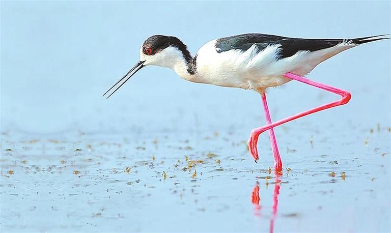 黑河濕地的黑翅長腳鷸。