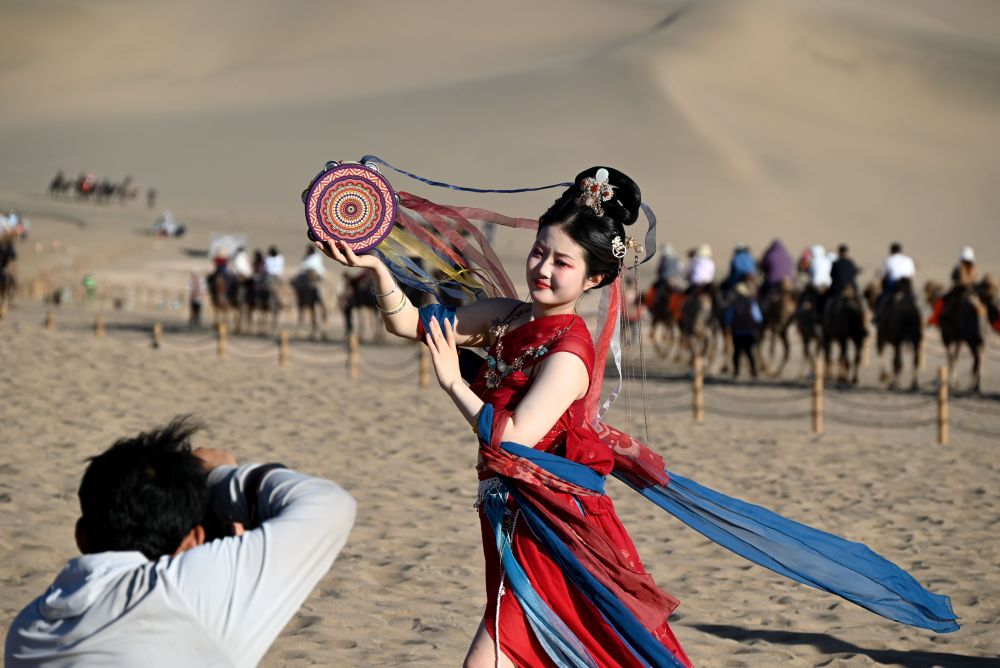 近年來,甘肅省敦煌市深入挖掘特色資源,推出旅游優(yōu)惠政策措施、智能化體驗服務和低空飛行、旅拍等文旅項目產品,不斷豐富文旅業(yè)態(tài),激發(fā)文旅消費新動能。據(jù)敦煌市文旅部門統(tǒng)計數(shù)據(jù)顯示,今年1至4月份,敦煌市旅游接待人數(shù)538.78萬人次,同比增長25.8%。