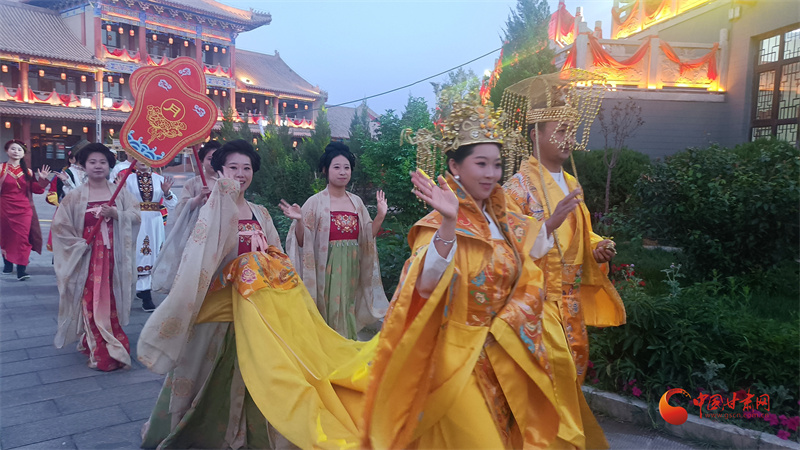 今夏,甘州府城將文旅融合的魅力展現(xiàn)得淋漓盡致。一場場精彩絕倫的活動,如同一幅幅絢麗多彩的畫卷,在府城徐徐展開。每晚,大型實景演出《隋煬帝萬國巡游》震撼上演,演員們身著華麗的古裝,在燈光與音樂的烘托下,重現(xiàn)了絲路盛景。讓觀眾仿佛置身于千年之前,親眼目睹了隋煬帝的威嚴與絲路的繁華。