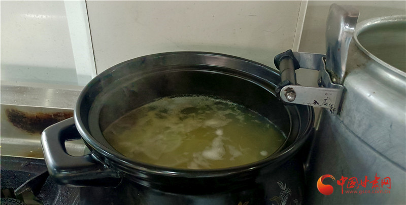 王永德,是山丹罐罐席的市級(jí)非遺傳承人。他的傳習(xí)所在李橋鄉(xiāng)高廟村,推門而入,柴火香混著肉香撲面而來,陶罐在灶上咕嘟作響。