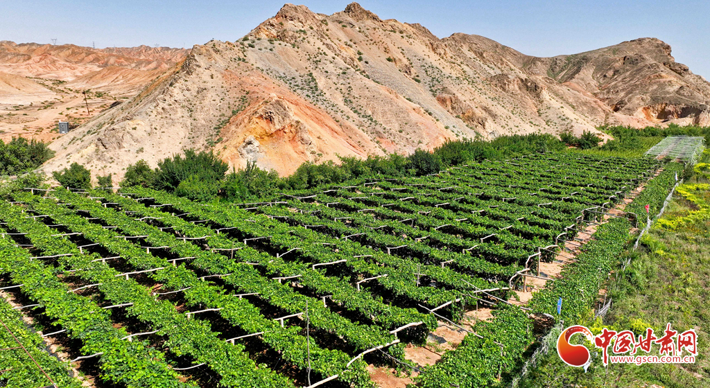 位于巴丹吉林沙漠南緣的臨澤縣,境內沙漠、戈壁面積占三分之二以上。近年來,當地采用護、封、造、固等措施進行荒漠綜合治理和實施“三北”工程,營造林木273萬畝,修復退化草地874萬畝。鄰近北部沙漠的板橋鎮(zhèn)積極探索荒漠戈壁上的“綠色革命”,在實施“三北”防護林建設工程的同時大力發(fā)展特色林果業(yè),建成1.5萬畝葡萄種植基地,昔日“黃龍”肆虐的北部荒漠區(qū),正在成為綠樹成蔭、果實累累的綠色美麗家園,林果業(yè)成為了當地群眾增收致富的主渠道。