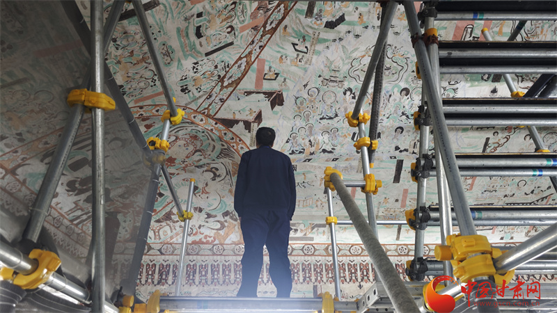 10月31日,由中央網(wǎng)信辦網(wǎng)絡(luò)傳播局、國家文物局政策法規(guī)司指導(dǎo),中國互聯(lián)網(wǎng)發(fā)展基金會(huì)特別支持,甘肅省委網(wǎng)信辦、省文物局主辦,張掖、嘉峪關(guān)、酒泉市委網(wǎng)信辦與敦煌研究院、中國甘肅網(wǎng)、鳳凰網(wǎng)甘肅頻道共同承辦的“何以中國|壁畫里的中國·當(dāng)AI遇見小飛天”網(wǎng)絡(luò)主題宣傳活動(dòng)走進(jìn)敦煌研究院,采訪在莫高窟修壁畫的青年修復(fù)師唐青松。