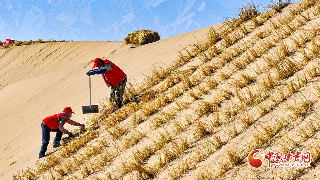 據(jù)了解,明花鄉(xiāng)地處巴丹吉林沙漠邊緣,沙化戈壁面積超過40萬畝,是國家“三北”防護(hù)林體系建設(shè)和北方防沙帶的關(guān)鍵區(qū)域。多年來,當(dāng)?shù)厝罕姵掷m(xù)開展防沙治沙,與危害生態(tài)的“黃龍”展開了一場(chǎng)“人進(jìn)沙退”的持久戰(zhàn)。時(shí)下,3.27萬畝“草方格沙障+高立式PE網(wǎng)沙障”沙化土地治理項(xiàng)目正緊鑼密鼓地推進(jìn)實(shí)施。