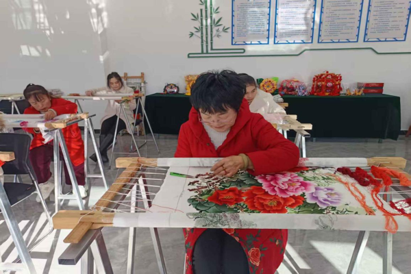 從硬片繡到架上刺繡,從鞋墊、枕頭到布藝首飾,十幾年間,刺繡讓袁紅艷為家庭帶去收入,更重塑了她自身。“這里有很多繡娘,大家互相鼓勵,我變得愛說愛笑了。”她給已經(jīng)工作的孩子繡實用品,參加比賽獲獎,獲得個人成就。“現(xiàn)在能幫襯家庭,感覺活得更有尊嚴了。”她建議無法外出務工的群體學習刺繡:“利用閑暇時間,既能增收,又能找到價值。”一根針,讓她從邊緣走向舞臺中央,一根線,讓她從“自卑”走向“自豪”。