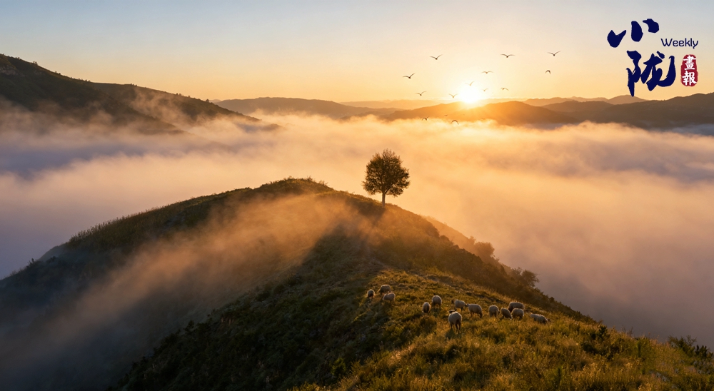 晨光初露時(shí),薄霧浮動(dòng)于溝壑之間,黃土塬的輪廓在光線中起伏,與飛翔的鳥兒、走過坡地的羊群與塬面草色,構(gòu)成一幅絢麗的畫卷。