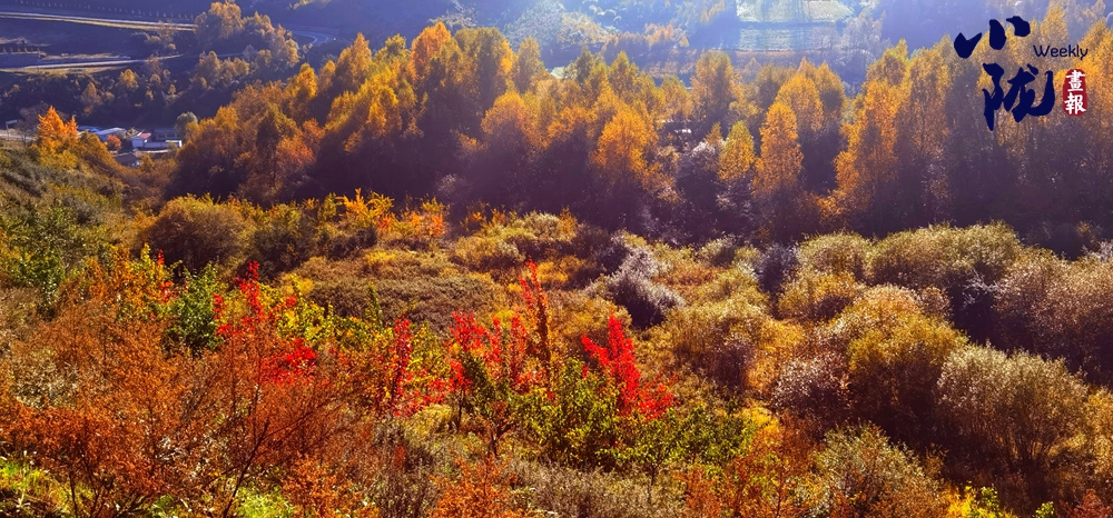 山巒溝壑間,紅、黃、橙、綠多色交織,在冬霜的滋潤(rùn)下,它們盡情綻放出生命的活力,仿佛是一幅色彩繽紛的油畫。