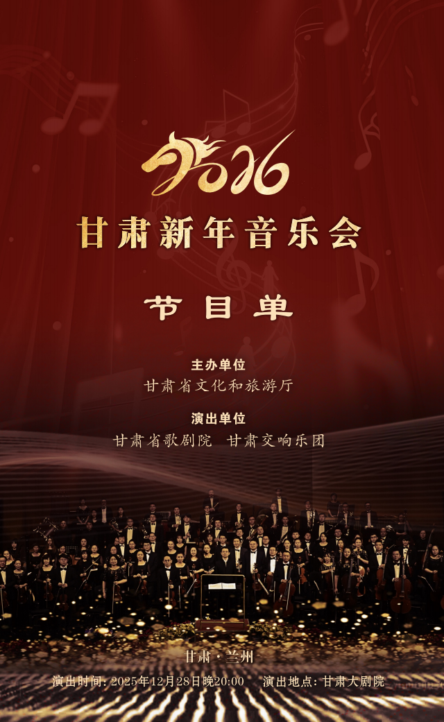 中國甘肅網12月24日訊(西北角·中國甘肅網記者 任磊)2026甘肅新年音樂會將于12月28日晚在甘肅大劇院奏響。本場音樂會由甘肅省文化和旅游廳主辦,甘肅省歌劇院、甘肅交響樂團承辦,將以一場中西合璧、氣勢恢宏的交響盛宴,為金城觀眾獻上誠意滿滿的新年祝福。