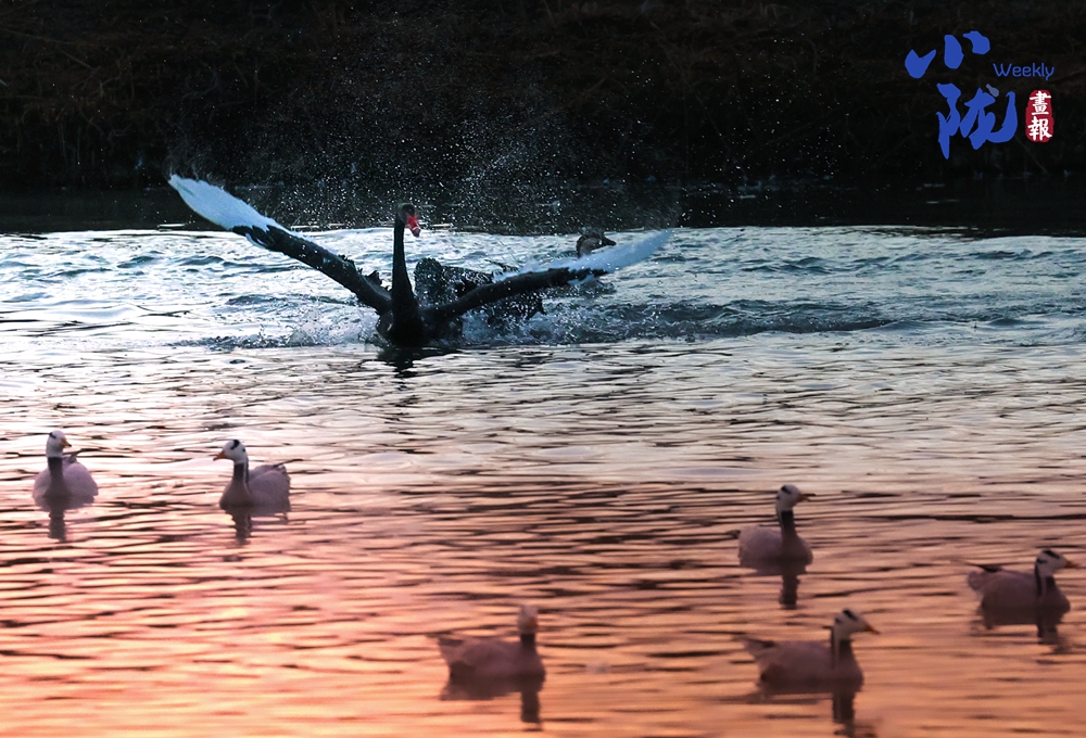 這里聚集了天鵝、赤麻鴨、灰雁等多種水鳥,它們在黃昏里愜意地游弋,或扎進水里捕魚,或相互追逐戲水的畫面,既震撼又溫柔,成為攝影愛好者和游人爭相追逐的“冬日奇景”。