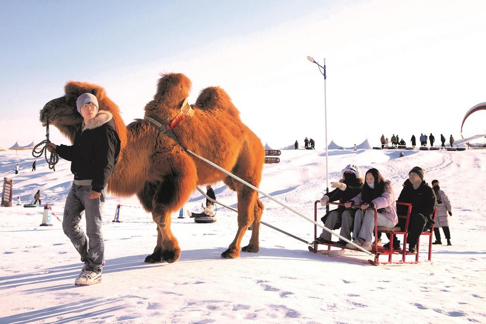連日來,眾多游客在張掖國家沙漠體育公園冰雪嘉年華體驗冰雪樂趣,冰雪滑道、碰碰球、雪地摩托車、駱駝雪車等多樣的冰雪活動為市民游客獻上冬日文旅盛宴。 李自海 攝