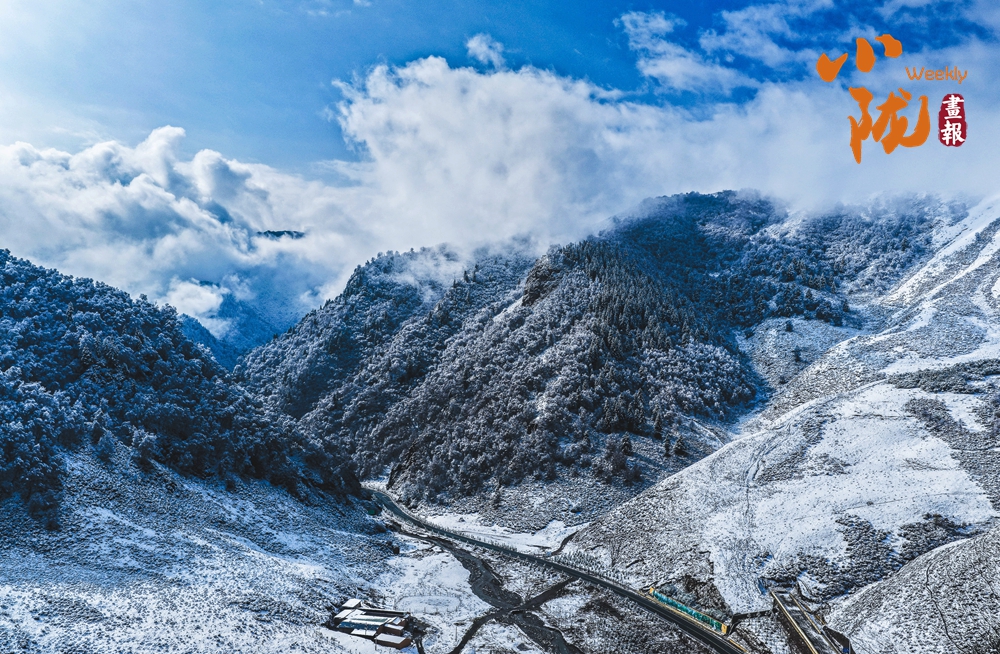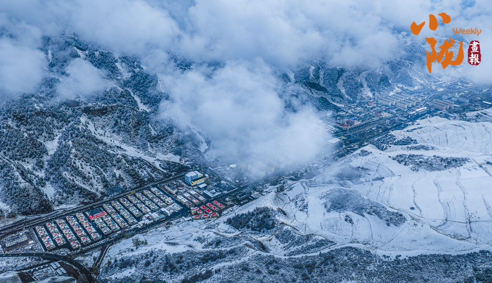 從高空俯瞰,烏鞘嶺的山脊線(xiàn)在雪中若隱若現(xiàn),一側(cè)云海翻騰,一側(cè)晴空萬(wàn)里,形成鮮明的“一山分兩景”的奇觀(guān)。