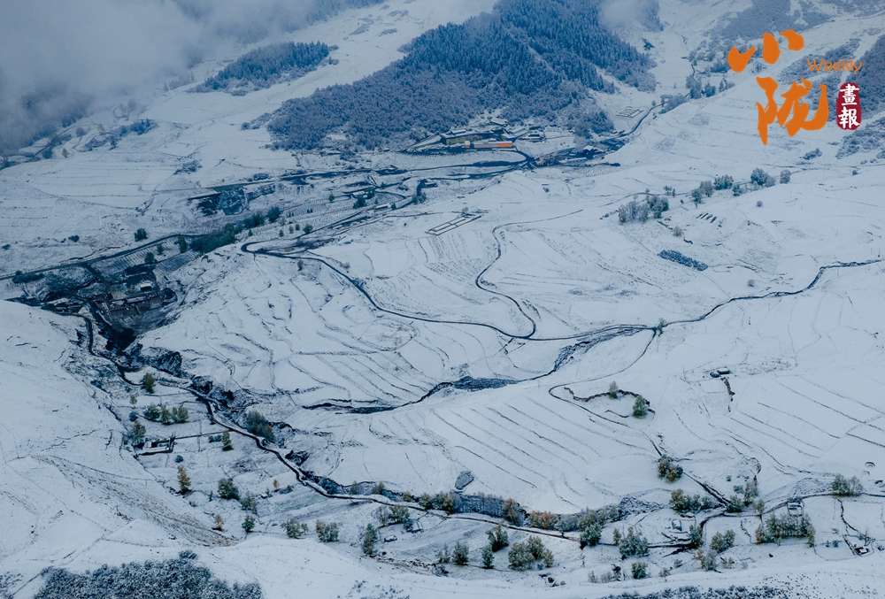 阡陌縱橫的農(nóng)田披上了素白的紗衣,天地之間,仿佛只剩下黑白兩種顏色,那遠(yuǎn)山的輪廓,那梯田的線(xiàn)條,那河床的蜿蜒,構(gòu)成了最純正的中國(guó)水墨畫(huà)。